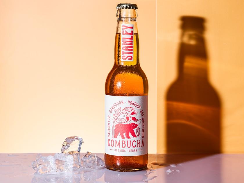 Stanley Kombucha mit Bio-Hagebutte und -Sanddorn vereint die natürliche Süsse der Hagebutte mit der spritzigen Zitrusnote des Sanddorns.