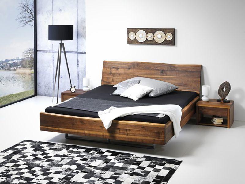 Massivholz Ast-Eiche, geölt / Nussbaum amerikanisch, geölt. Rahmenhöhe ca. 21-22 cm, Einbautiefe bei Kufen ca. 19 cm, Rahmendicke 3.2 cm, Bettseitenhöhe ca. 39-40 cm ab Boden. Baumkante entrindet, schwebend, Höhe Kopfteil ca. 94 cm ab Boden für die Bettgrösse 180 x 200 cm. In verschiedenen Grössen und Ausführungen erhältlich.